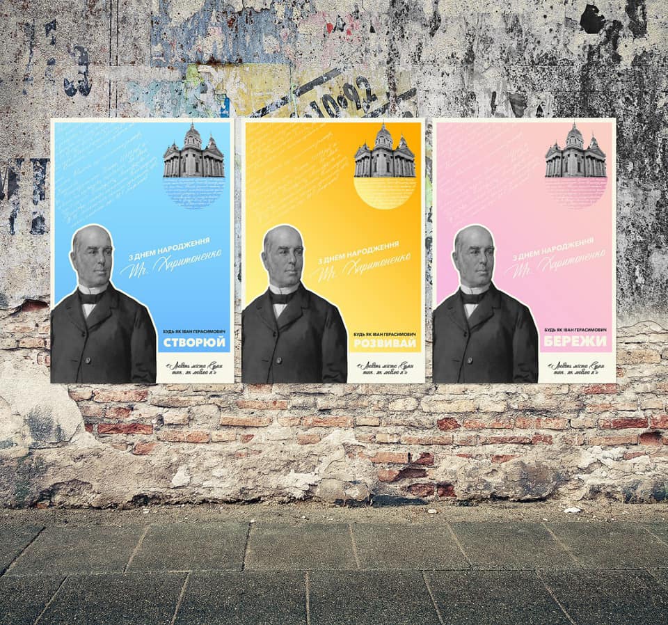 Сумской дизайнер Дмитрий Дубовик разработал серию плакатов ко дню рождения Ивана Харитоненко. Таким образом он захотел привлечь внимание сумчан к личности самого известного мецената, который внес огромный вклад в развитие нашего города. По его постерах содержатся призывы к горожанам: «Создавай», «Развивай», «Береги».