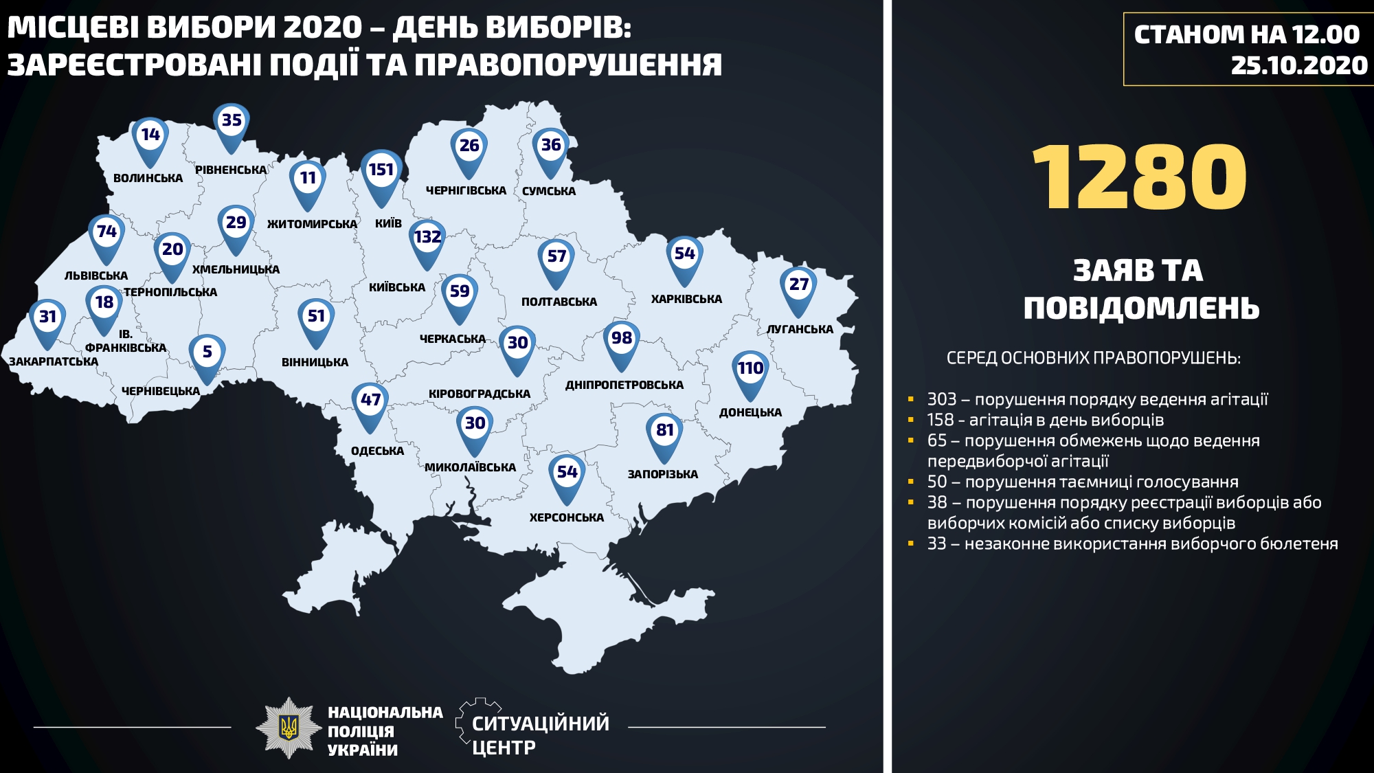 По состоянию на 12.00 по Сумской области полиция зафиксировала 36 сообщений, связанных с избирательным процессом. Об этом сообщает сайт Национальной полиции Украины.