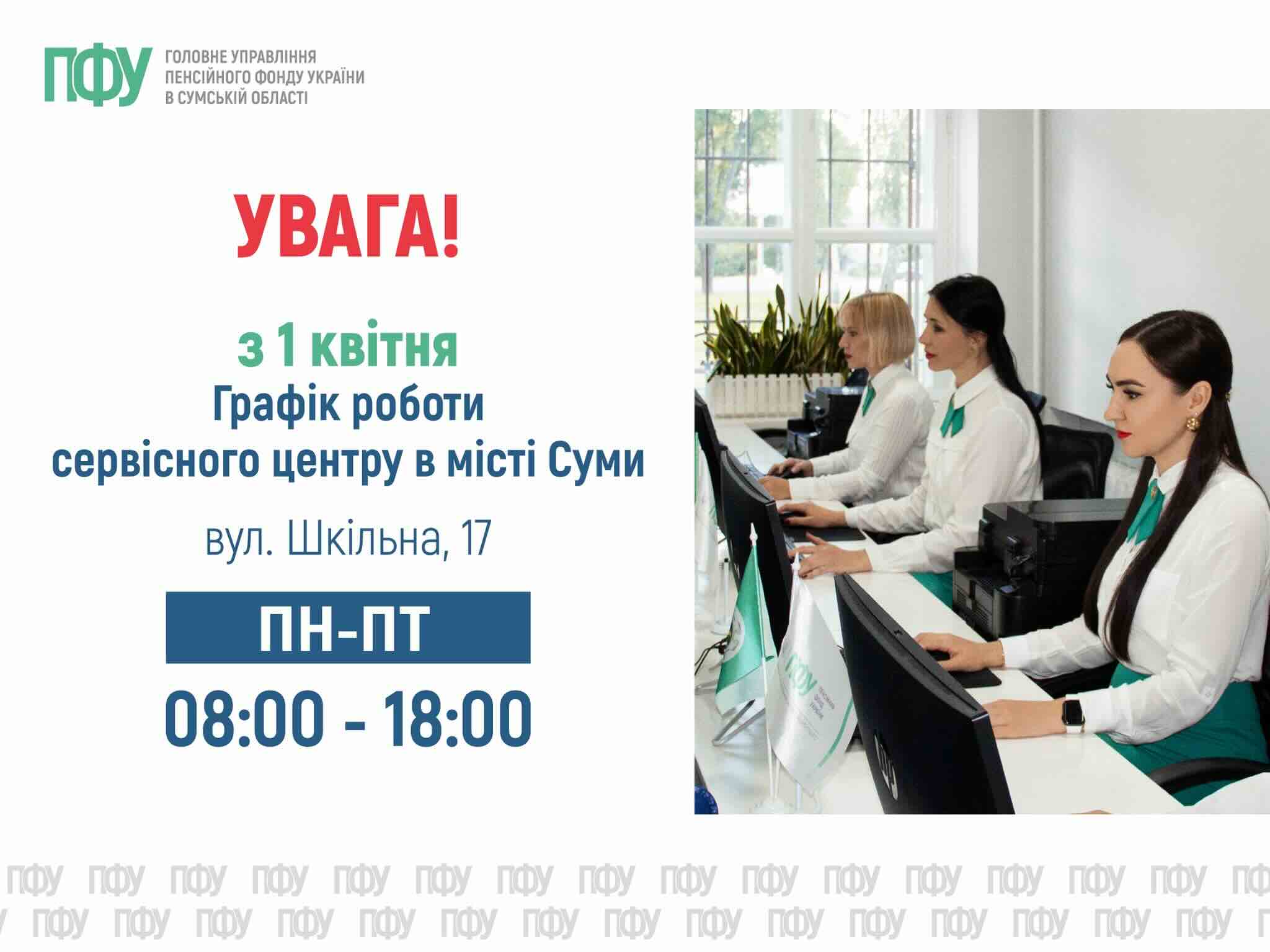 Пенсійний фонд повідомив про зміну роботи сервісного центру у місті Суми