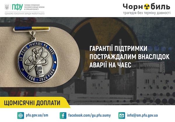 Пенсійний фонд Сумщини забезпечує стабільні виплати мешканцям зон відселення та постраждалим від аварії на ЧАЕС