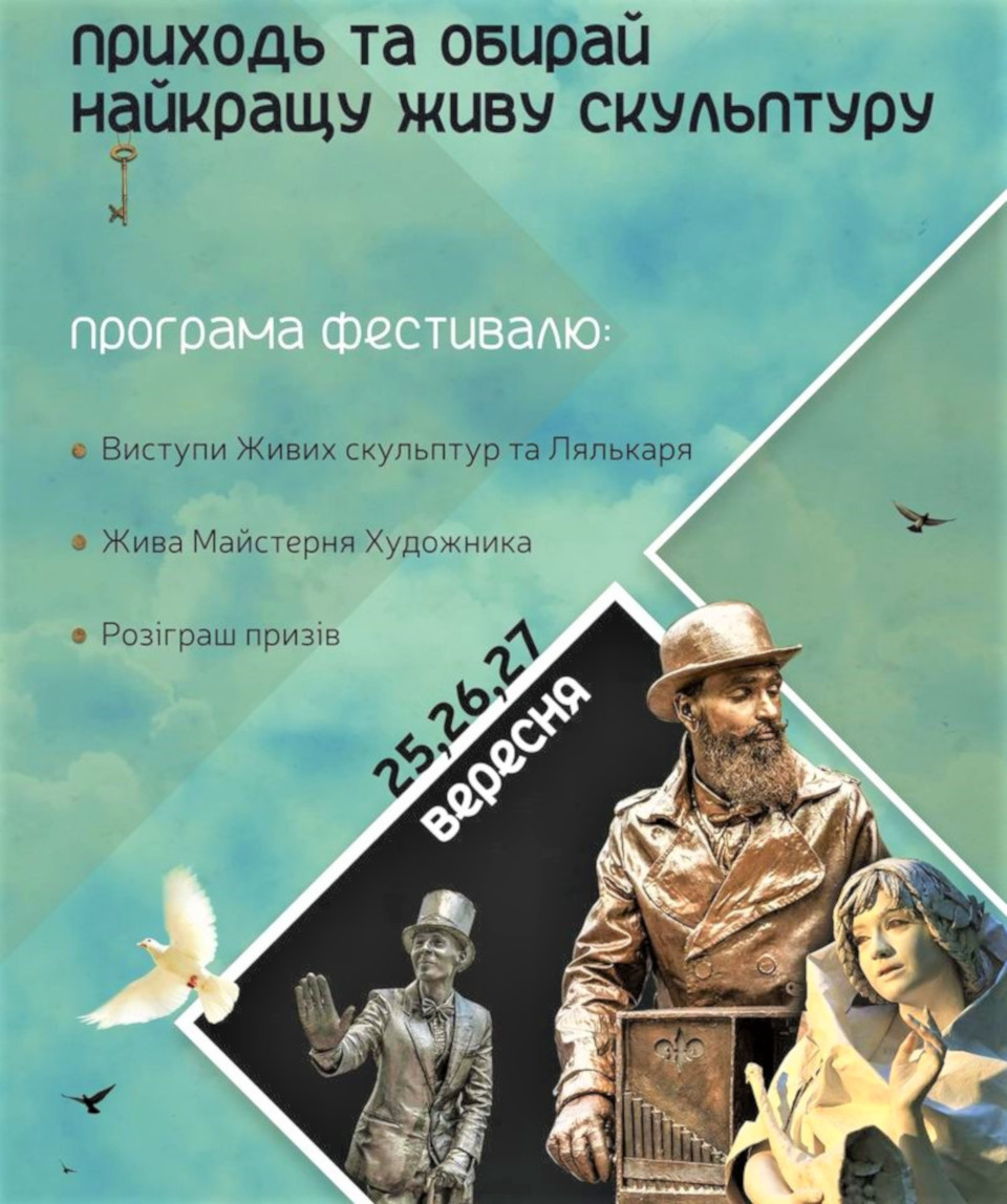 В воскресенье, 27 сентября, выставка живых скульптур локализуется на площадях Покровская и Театральная с 15:00 до 18:00. В 17:00 для желающих узнать больше о городе над Пслом проведут экскурсию Сумами, впрочем участников предупреждают – количество мест ограничено и по предварительной записи. Финиширует фестиваль в 18:00.