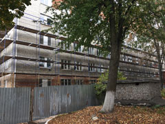 Последние несколько лет не раз поднимался вопрос ремонта фасада главного корпуса Сумского областного онкодиспансера, где заметно облетела плитка и появились трещины. А вот, лед тронулся: строители уже установили леса с тыльной стороны здания и приступили к работе. За все время (корпус был построен в 1977 году), по словам руководителя медучреждения Владимира Шевченко, здание капитально не приводилось в порядок. Сегодня в нем размещается четыре стационарных отделения, где 180 хирургических коек, операционный блок. В перспективе на первом этаже будет еще и современное отделение химиотерапии.