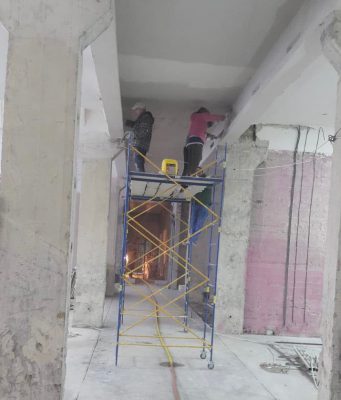 Як і очікувалося, після завершення демонтажу, працівники «АМК РЕМ-БУД» працювали над стяжкою підлоги, монтували та шпаклювали нові стіни, прокладали електричні мережі, а також трубопроводи для майбутньої вентиляційної системи. Наразі вони готують стелю до подальших ремонтних робіт.