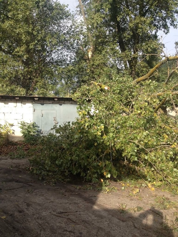Стоит отметить, что аварийным тополям около ста лет, и по своему размеру они очень велики, что удваивает их небезпеку.17 сентября штормовой ветер снова сделал свое злое дело и повалил еще два дерева, которые упали на гаражи кооператива и повредили электроопоры. «Удар был такой силы, что два столба повергло просто« под корень», – рассказывает Пустовой.