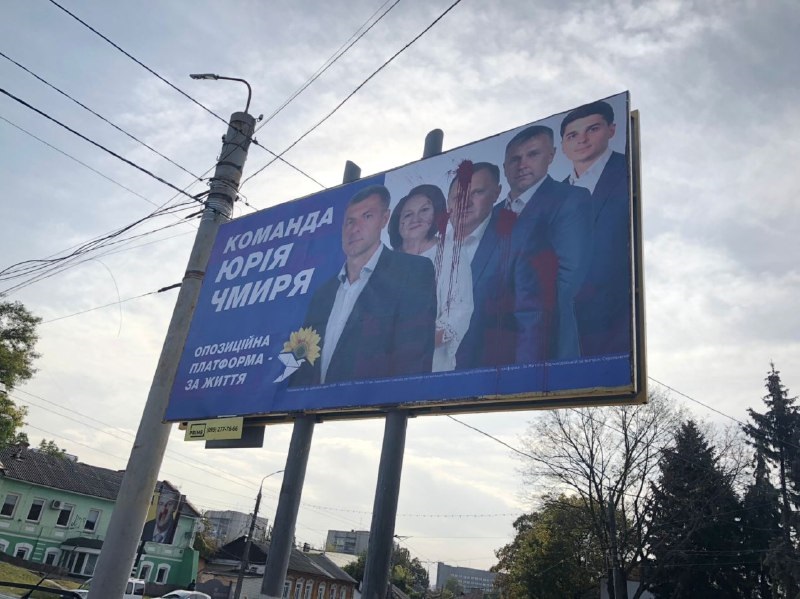 В Сумах рекламные щиты ОП-ЗЖ облили краской и угрожают партийцам в соцсетях